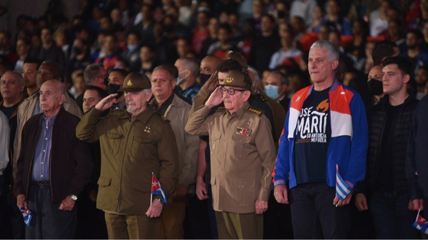 La Habana, 28 ene.- El líder de la Revolución cubana, Raúl Castro, y el presidente de la República, Miguel Díaz-Canel participaron este viernes en la tradicional marcha de las Antorchas en homenaje al Héroe Nacional José Martí, en el aniversario 170 de su natalicio.