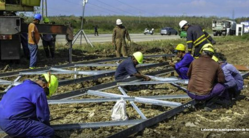 Granma, Cuba. – Especialistas procedentes de siete provincias cubanas acoplan e izan estructuras metálicas que soportarán las líneas de 220 kilovoltios de potencia, que conectarán a Granma con el Sistema Eléctrico Nacional (SEN) después del huracán Melissa.