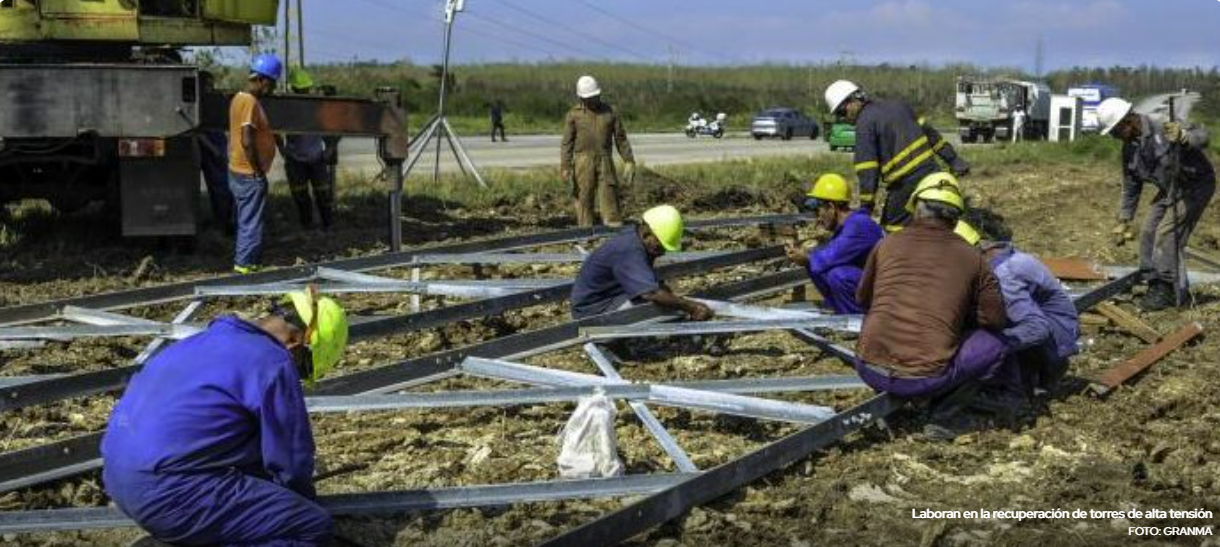 Granma, Cuba. – Especialistas procedentes de siete provincias cubanas acoplan e izan estructuras metálicas que soportarán las líneas de 220 kilovoltios de potencia, que conectarán a Granma con el Sistema Eléctrico Nacional (SEN) después del huracán Melissa.