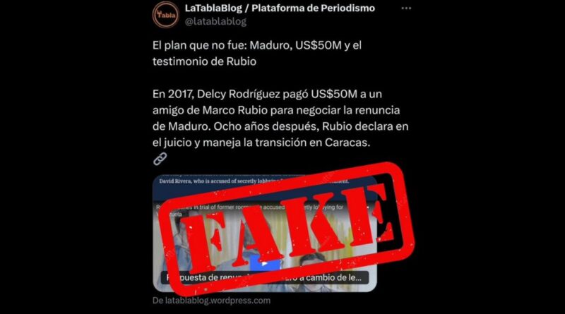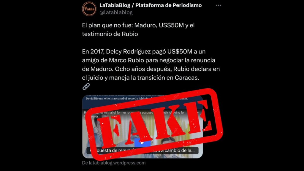 El periódico Cuatro F señaló que el pago ficticio tenía como objetivo “mediar ante figuras políticas de Estados Unidos” como Rubio, para pactar la salida del gobernante.
