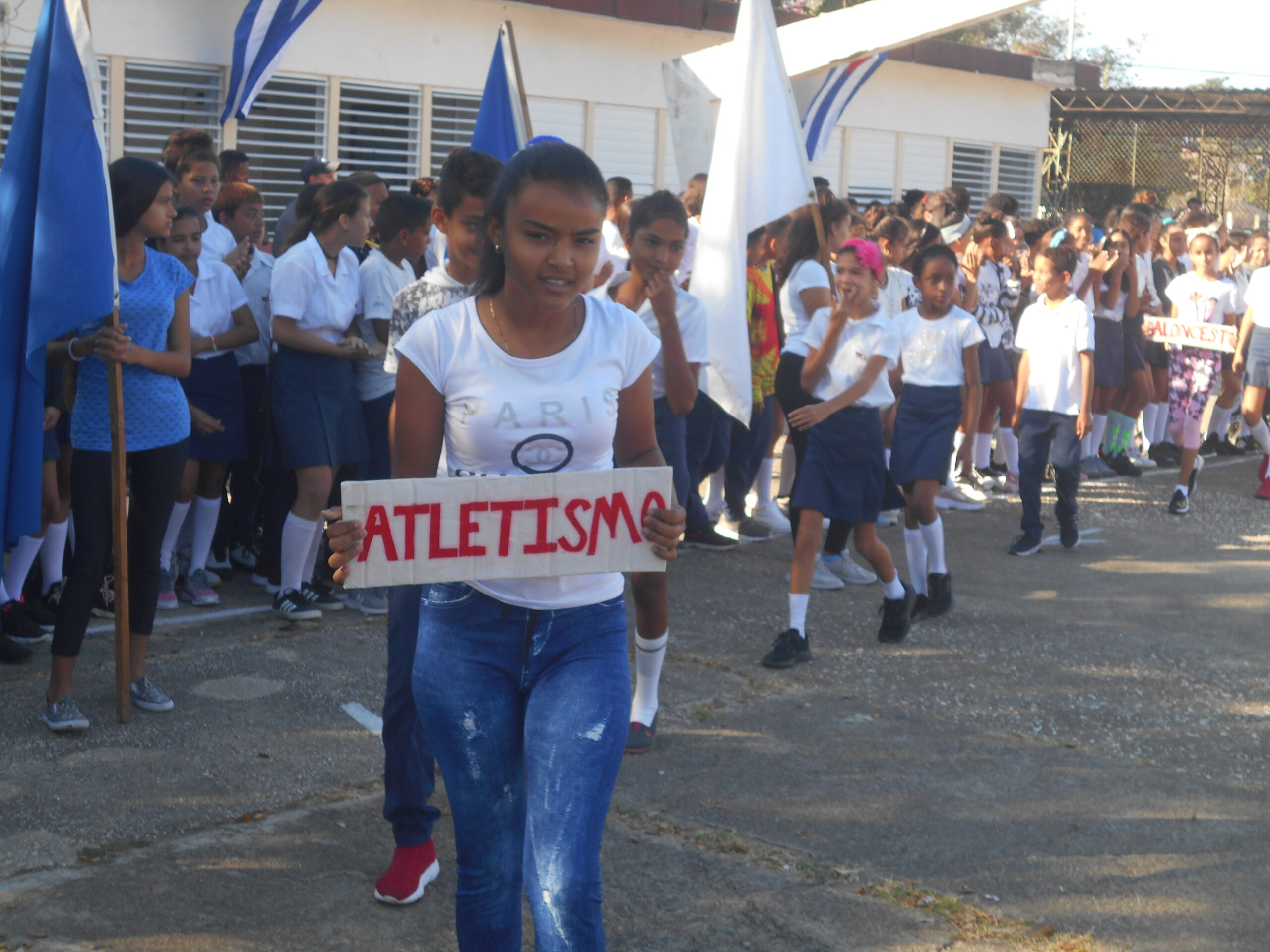 Los educandos de ambos de sexos de séptimo, octavo y noveno grados competirán amistosamente en fútbol, voleibol, atletismo y kikimbol, entre otras disciplinas. La estudiante Éroda de la Caridad Varona dio lectura al juramente atletico. Exhortó a jugar con disciplina.
