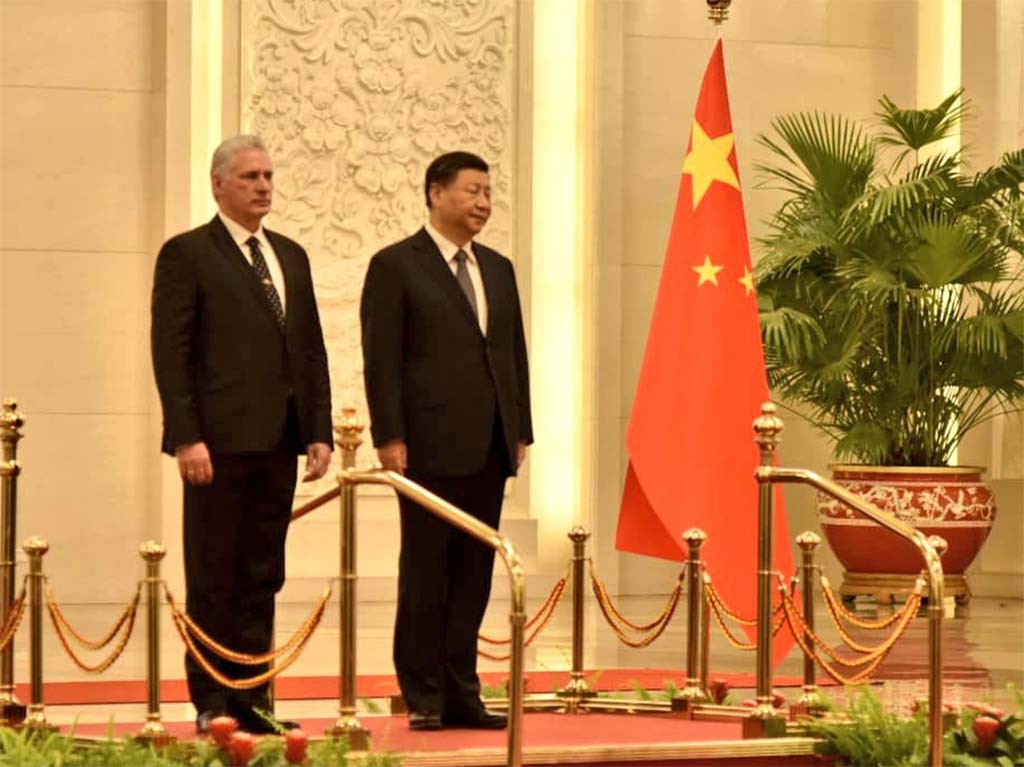 Las pláticas siguen al recibimiento oficial en el Gran Palacio del Pueblo de Beijing, donde Xi agasajó al dignatario cubano con los honores correspondientes a su alta investidura.