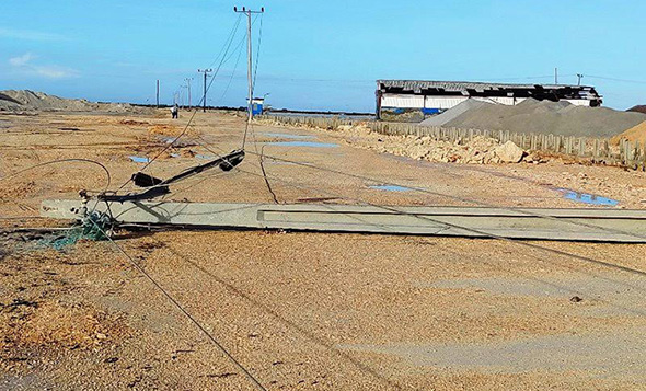 Situada en el litoral del norteño municipio de Puerto Padre, donde los vientos registraron rachas de 110 kilómetros por hora y por su proximidad a las aguas del Atlántico sufrió, también, el embate de marejadas del evento hidrometeorológico en su tránsito por el cercano territorio holguinero, y muchos inmuebles perdieron partes de sus estructuras y las redes eléctricas no soportaron en “pie”.