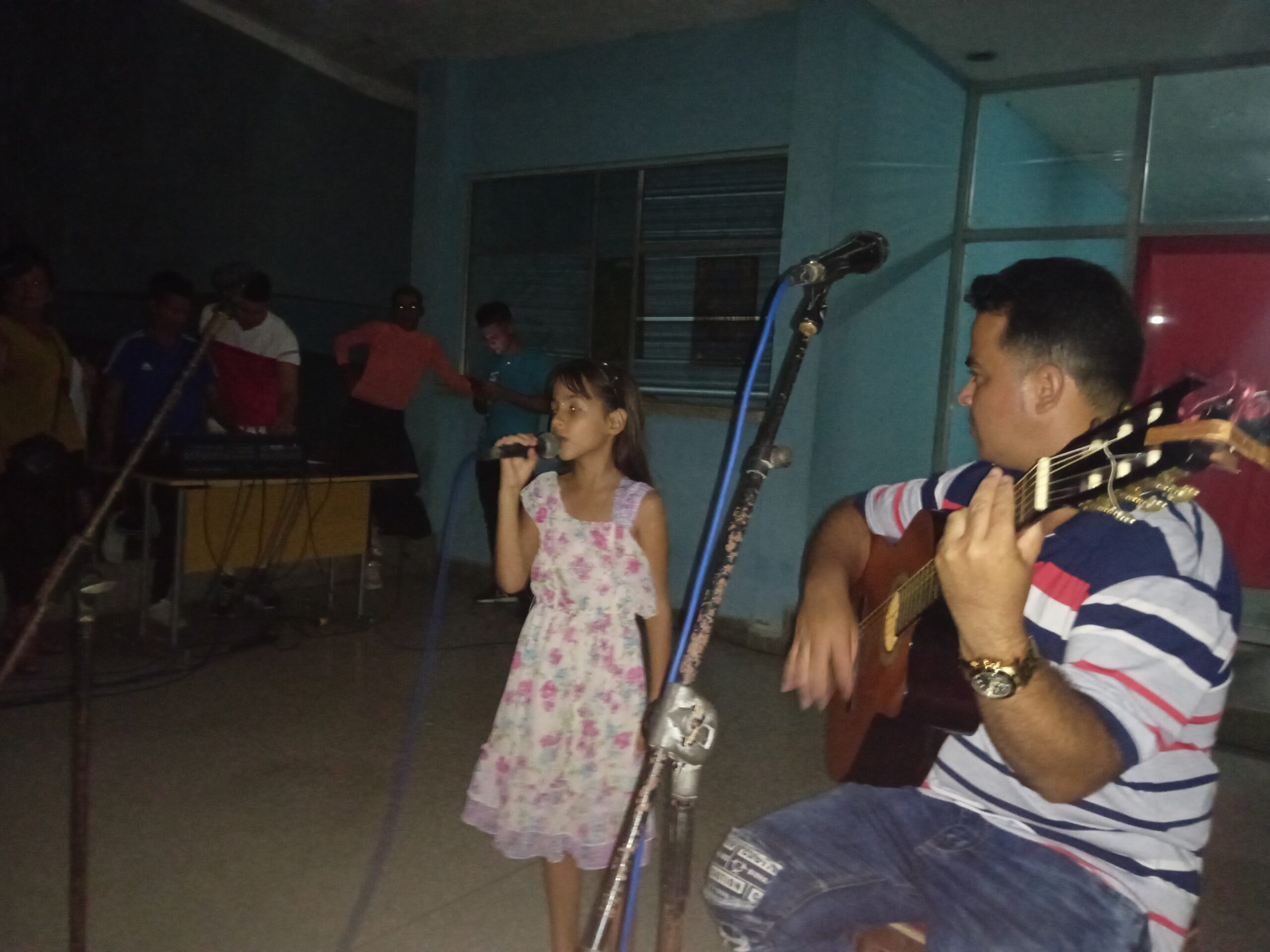 La aficionada Ana Paula Pedrosa acompañada inicialmente a la guitarra por el instructor de arte Diosbel Pedrosa Borges cantó el tema titulado Revolución, luego interpretó Corazón valiente, canción de gran sentido patriótico.