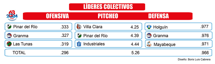 En un torneo donde el promedio colectivo de carreras limpias permitidas cada nueve capitulos es de 5.26, los lanzadores de Villa Clara son los más efectivos (4.25), seguidos de los pinareños (4.39).